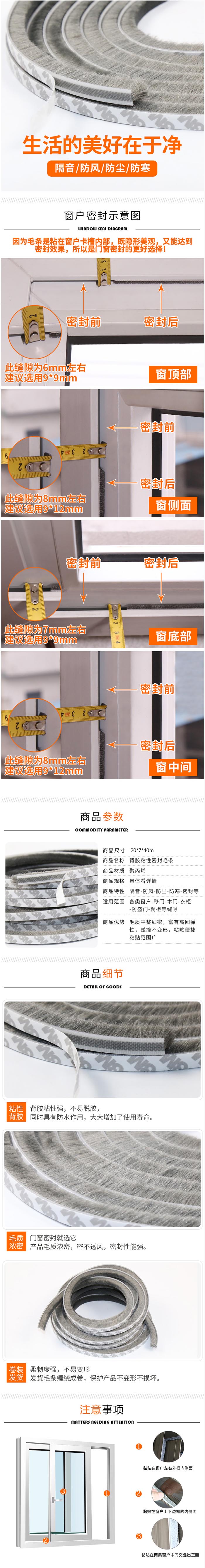 鋁合金門窗密封條塑鋼窗戶保溫隔音自粘型玻璃木門縫防風保暖毛條20*7*40M